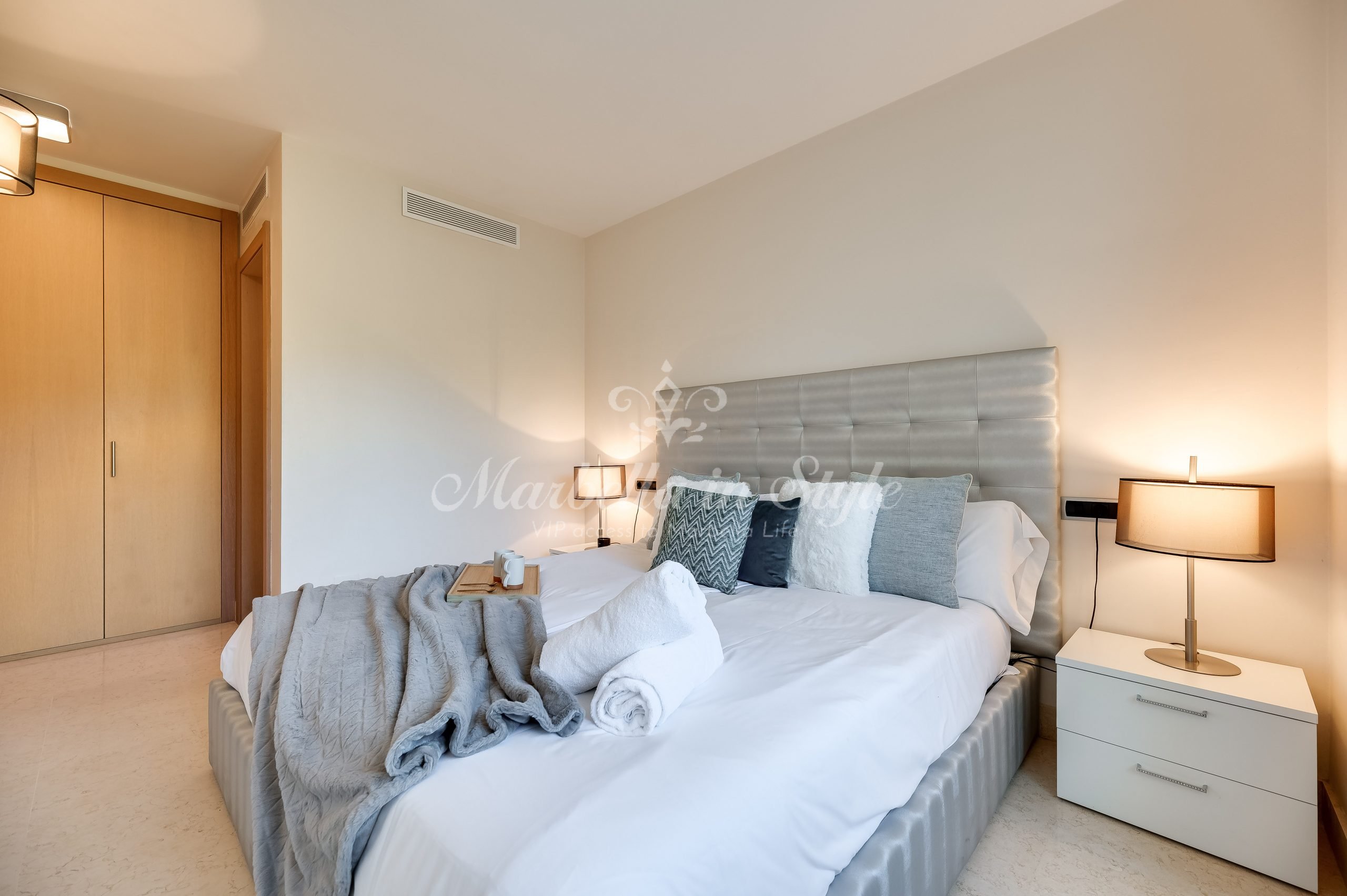 Enjoy a luxurious stay in this 3-bedroom apartment in Jardines del Príncipe, Marbella’s Golden Mile. Spacious and elegant, it features an en-suite master bedroom, bright living room, stylish dining area, large terrace, and a fully equipped kitchen. Exclusive amenities include a pool, gym, and secure parking. Close to shops, beaches, and top attractions—perfect for a high-end getaway!